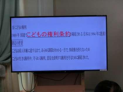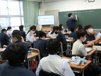 まずは、プリントに書いた各自の考えをグループごとに発表しています。