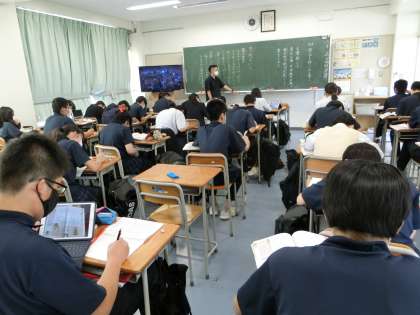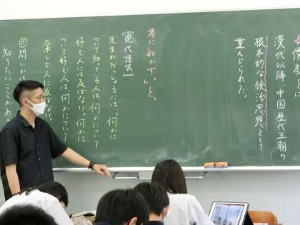 3年生国語は、「論語」。儒教には、今の時代でも共通するありがたい教えがあるということを資料集を見ながら、学んでいます。
