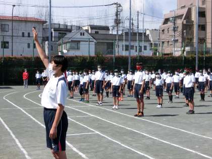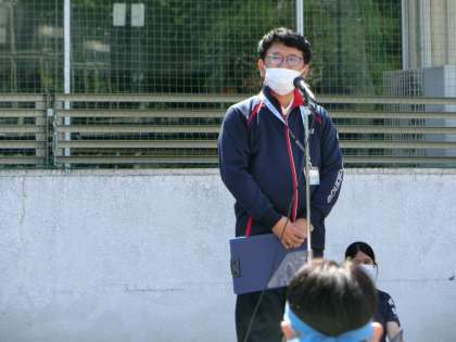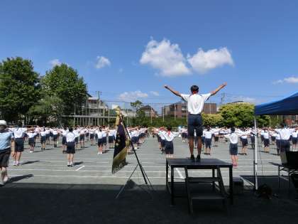 開会式です。校長先生からは「チーム北沢で頑張ろう」と。ラジオ体操、選手宣誓。