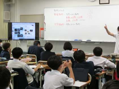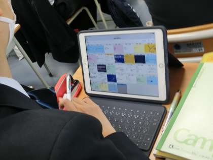 1年生もタブレットが配布されたので、ロイロノートに意見を書いて送って共用して学習しています。