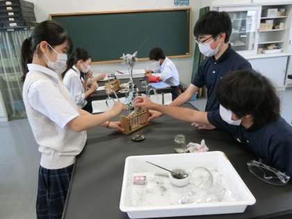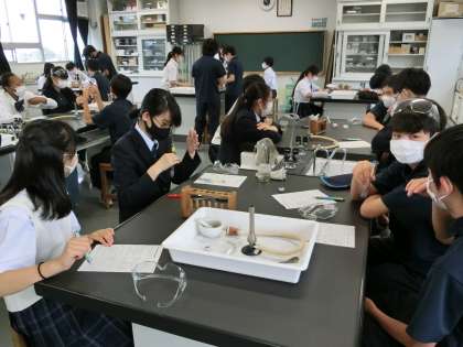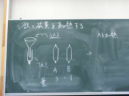 2年生理科は実験で、「鉄と硫黄の混合物を加熱する」とどうなるかで、マスクの上から匂いを嗅いでも、硫黄の匂い、ゆで卵の匂いです。