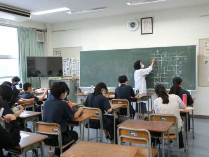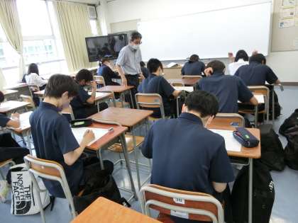 今日は、期末テスト9日前。3年生英語は試験範囲の練習プリントを。2年生国語は文法で、動詞の活用形の復習を行っています。