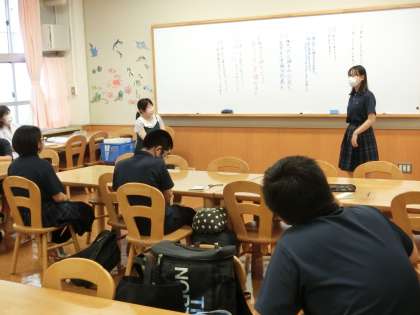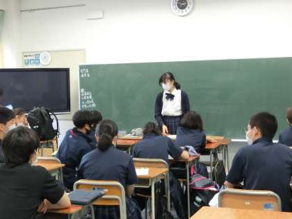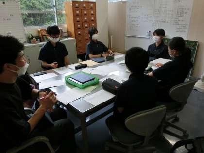 7月の反省と9月の活動目標を話し合っています。写真は上から、放送・保健給食・生徒会役員会です。みんな真剣に話し合っています。