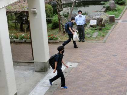 8時25分位から、玄関前に立って、駆け込んでくる生徒に「おはよう。あと何分ですよ」と声かけをしてくださっています。生徒たちは、校長先生から声をかけて貰うことが嬉しいそうで、ニコニコしながら、登校しています。