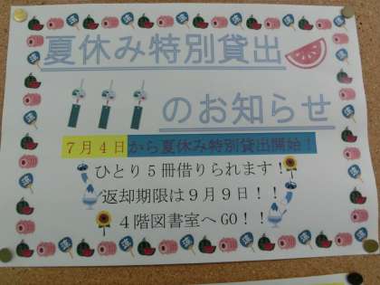 期末テストも終わり、夏休みの図書の貸し出しも始まりました。
