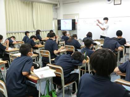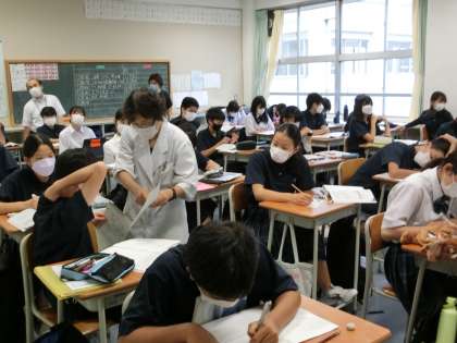 1Aは社会。南アジアの学習で、タイ米の話を。