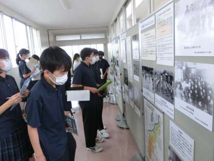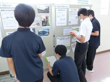 クラスごとに、じっくり見学して、アンケートに記入しています。