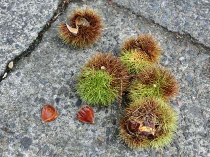 学校に栗の木が1本あります。最近の風で、いがぐりが落ちていますが、秋ですね。