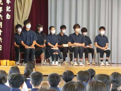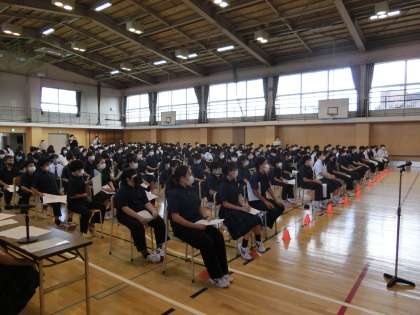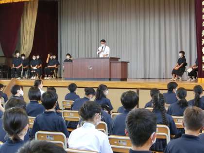 6時間目、体育館で新しい生徒会役員を決める演説会を行いました。