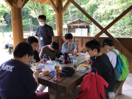 隣の広場で昼食です。