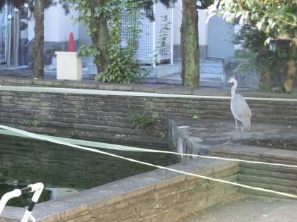 今朝も、池の鯉と金魚を捕りに来ています。人がいないと体育館の屋根から、池の淵に降りてきて・・・どなたか池の鯉たちを守るために、撃退法ご存知でしたら、教えてください。