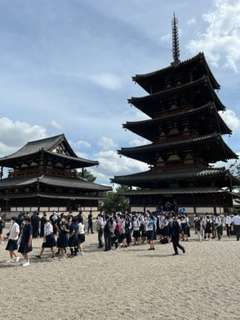 法隆寺に来ています。たくさんの修学旅行生が、見学の順番を待っています