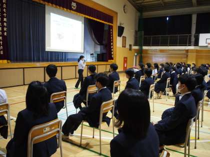 学校医の先生の眼科講話がありました。眼の構造や近視の増加、コンタクトレンズの使い方などわかりやすく教えてくださいました。スマホの長時間使用やコロナで屋外の活動が減って、近視が増加している話もありました。一生お付き合いする眼の健康を考えましょう。