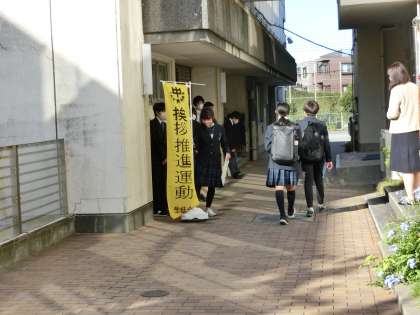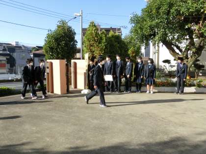 秋晴れの気持ちいい今朝は、生徒会役員と保健給食委員が正門と1年昇降口の前で、元気よく「おはようございます」と声をかけ、今日の始まりです。
