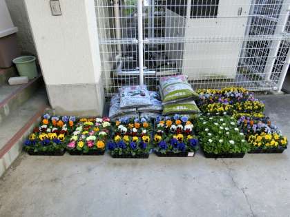 今年もお花と土を頂きました。 明日の土曜授業の後に、3年生ボランテイアに綺麗に植えてもらいます。