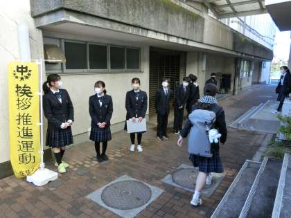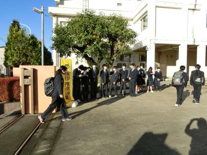 今朝は久々に晴れて真っ青な空ですが、空気が冷たい中、正門と昇降口で、生徒会役員と学級委員が元気に「おはようございます」と声をかけて、本日スタートです。