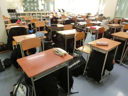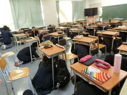 みんな速やかに机の下に頭を隠して、つぎの放送が入るまで静かにしていました。