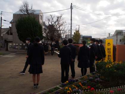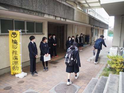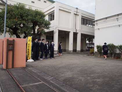 今日は、美化委員と生徒会でのあいさつ運動でした。「おはようございます」のあいさつが校舎に響いていました。