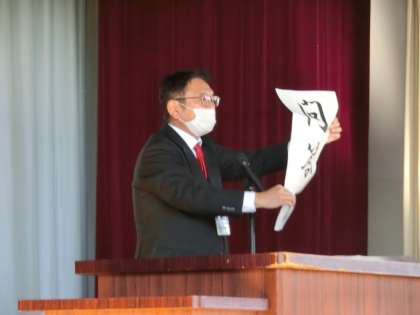 校長先生から、1つ目は「目標達成に向けて、計画性を持とう」中国の孫子の書に「予(あらかじめ)」とあります。予習・予定・予防等ありますが、共通しているのは「1歩先を考えることはとても大切だ」ということです。