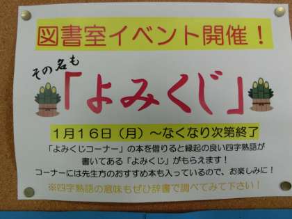 今月のイベントは、「よみくじ」16日から行います。