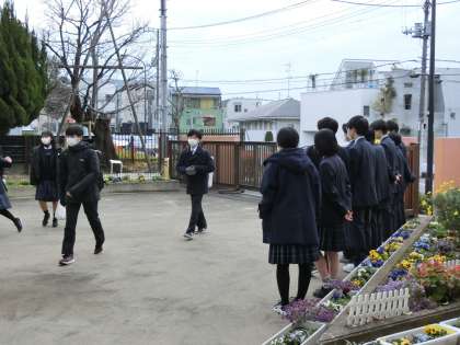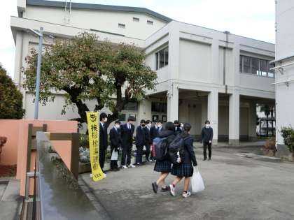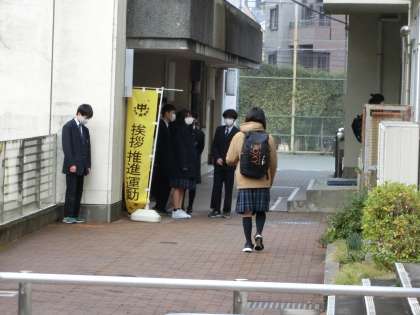 今朝はとても寒いですが、生徒会役員と放送委員が正門と1年昇降口で、「おはようございます」と声をかけて、今日もスタートです。