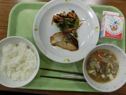 ご飯 ・鰆の照り焼き ・磯和え ・豚汁 ・牛乳です。