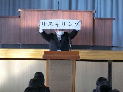 校長先生からは、集中力を鍛えるために、25分勉強したら5分休んでを4回繰り返すと達成感が出来ます。やってみてください。リスキリングについて、もう一度スキルを身につけましょうというお話がありました。