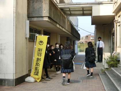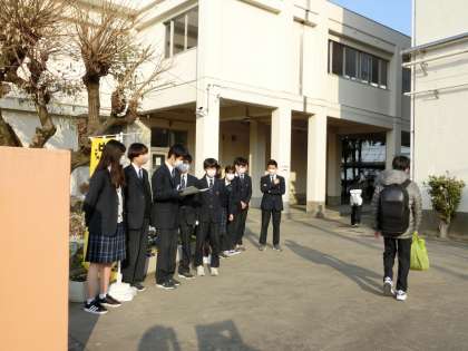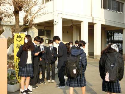 今朝は、生徒会役員と学級委員が正門と1年昇降口前で、中庭まで響き渡るような大きな声で「おはようございます」と声をかけて、本日スタートです。