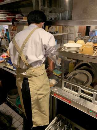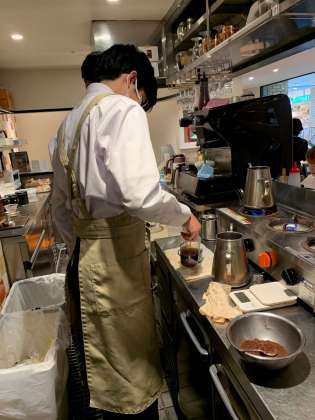 今週は実際に厨房を見学させていただき、食器洗いとコーヒーを淹れるためのレクチャーを受け、接客マナーについてご指導いただきました。