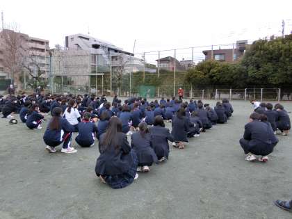 今日は、地震が発生したという設定で、避難訓練を行いました。