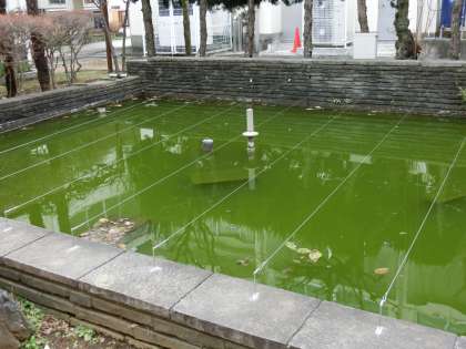 サギ(鳥)対策として、池に鉄線を貼ってもらいました。