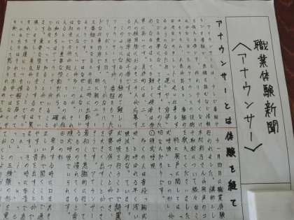 それぞれが調べて、作った職業新聞が展示されています。学校にいらしたときにじっくりご覧ください。