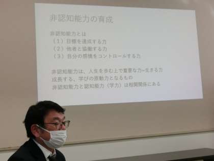 委員の方にお集まり頂き、校長先生から「学校関係者評価アンケートの本年度の自己評価・次年度に向けての改善方針について」、パワーポイントを使ってご説明し、ご意見を頂きました。これをもちまして、今年度の学校関係者評価の報告を上げていきたいと思います。