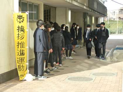 生徒会役員と美化委員が正門と1年昇降口で、「おはようございます」と元気よく声をかけて、3月スタートです。
