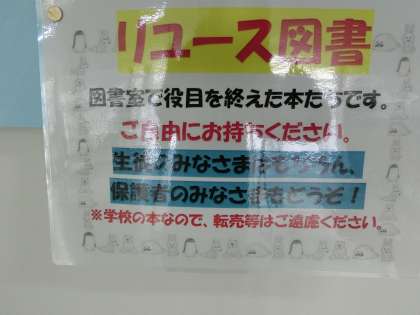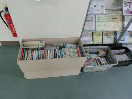 玄関を入ると今回もリユース本が置かれていますので、ご自由にお持ちください。