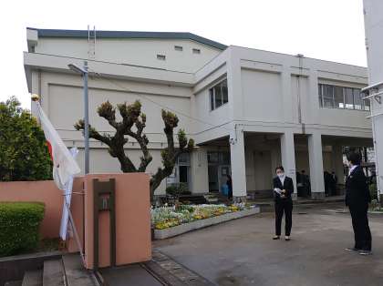 雨が上がりました。 風が強くなっていますので、気をつけて登校してください。 受付も始まりました。(副校長)