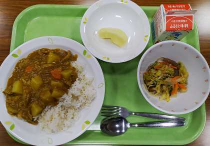 今年度最初の給食は定番のカレーライスです。