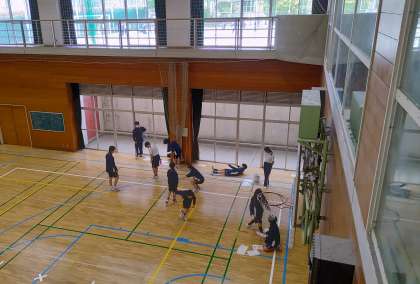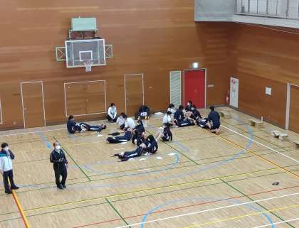 こちらでもお互いに励まし合いながら計測しています。(副校長)