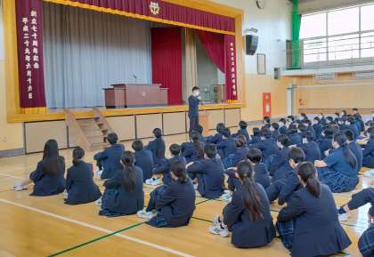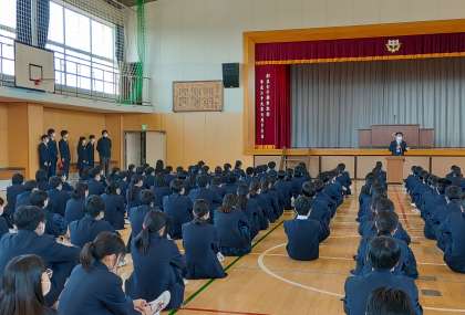 今年度初めての全校朝会、時間通りに始めることができました。さすがですね。(副校長)