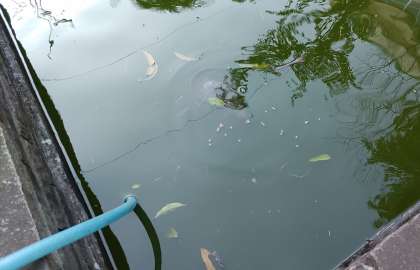 今朝は亀さん1匹が姿を見せていません。今日予定している池の大掃除を予感しているのでしょうか。