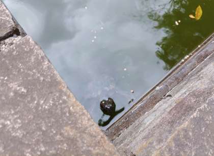 今朝の亀さん、1匹はとても近くまで来ましたが、もう1匹は警戒していました。土日に間があいてしまったからでしょうか。
