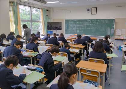 日本と緯度が同じ国は?などの問題に取り組んでいます。(副校長)