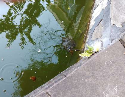 今朝の亀さんは相当警戒しています。1匹は姿も見せません。心配なので、日中温かくなったら、また様子を見てみます。