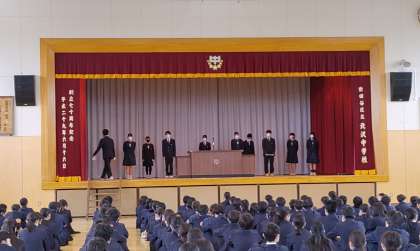 時間通りに生徒朝会が始まりました。GW明けなのにさすが北中生ですね。