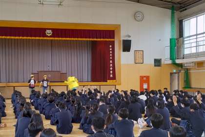生徒朝会の後、児童館の中高生支援についてPRがありました。