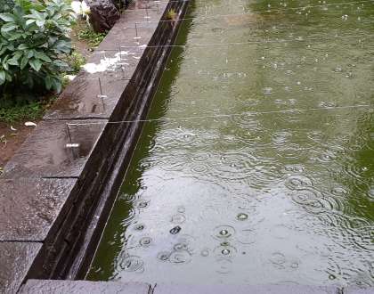 池の亀さん、亀子さんは近くに来ますが、亀男さんは遠くからこちらを見ています。