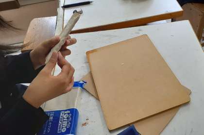 デザインが決まった生徒はMDFボードを切ったり、粘土で立体的な土台を作り始めています。