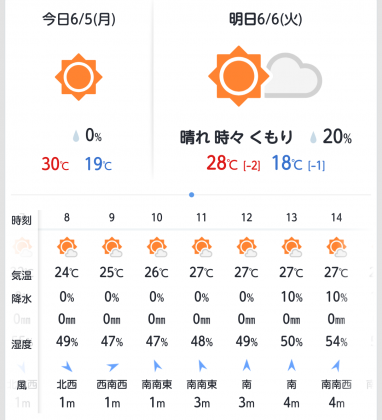 予報によると、☁または⛅、降水確率は、20〜30%です。
