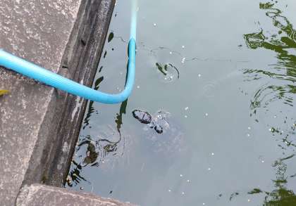 今朝は池の亀さん、鯉さん元気に餌を食べていました。