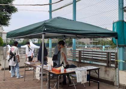 来賓受付、保護者受付ともにPTA役員の皆さまにお願いしています。 ありがとうございます!(副校長)